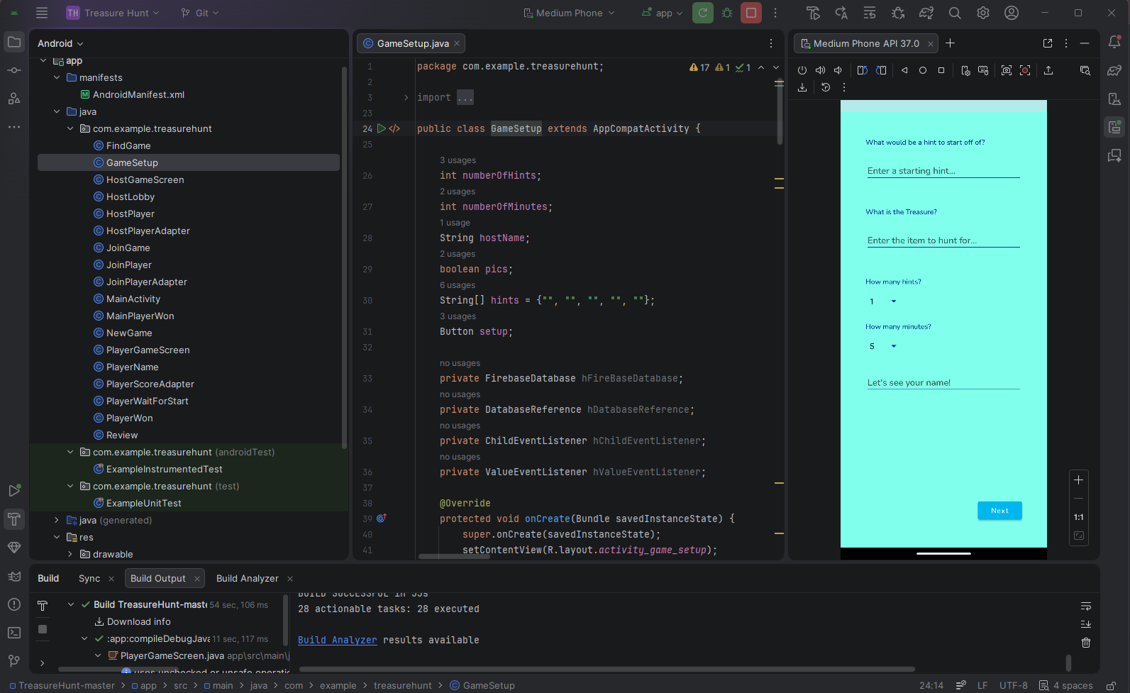 An Android App for treasure hunts, made in Android Studio using Java. GitHub.